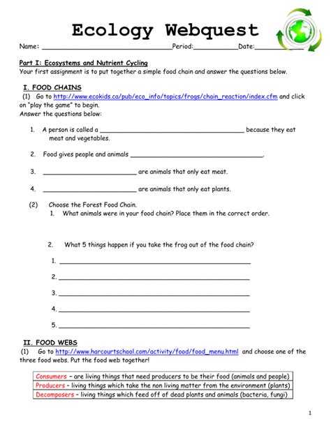 Free PDF ECOLOGY WEBQUEST ANSWER KEY Kindle Editon Gutenberg